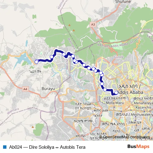 See why over 2 million users trust and consider busmaps.com as the best public transport website. busmaps gives you Addis Ababa Buses suggested routes, real-time bus tracker, line route maps in Addis Ababa, and helps to find the closest Ab024 bus stops near you. No internet available? Download an offline PDF map and bus schedule for the Ab024 bus to take on your trip.
