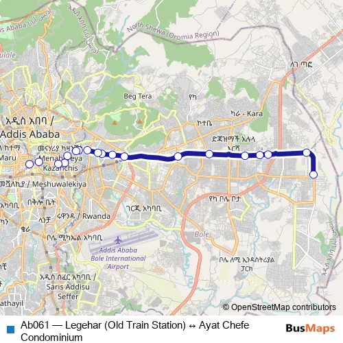 Click here to view the nearest Ab061 - Legehar (Old Train Station) ↔ Ayat Chefe Condominium bus stop.
