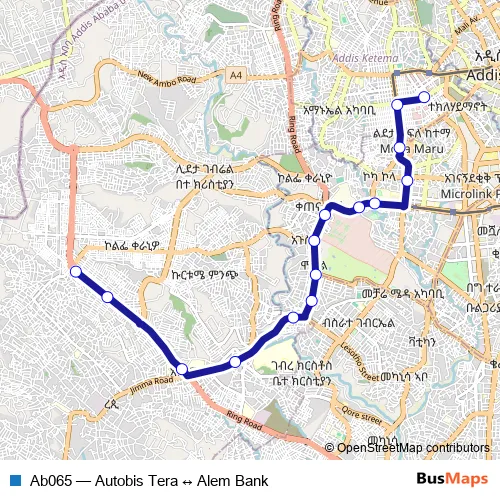 See why over 2 million users trust and consider busmaps.com as the best public transport website. busmaps gives you Addis Ababa Buses suggested routes, real-time bus tracker, line route maps in Addis Ababa, and helps to find the closest Ab065 bus stops near you. No internet available? Download an offline PDF map and bus schedule for the Ab065 bus to take on your trip.