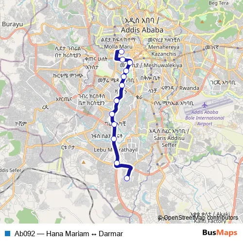See why over 2 million users trust and consider busmaps.com as the best public transport website. busmaps gives you Addis Ababa Buses suggested routes, real-time bus tracker, line route maps in Addis Ababa, and helps to find the closest Ab092 bus stops near you. No internet available? Download an offline PDF map and bus schedule for the Ab092 bus to take on your trip.