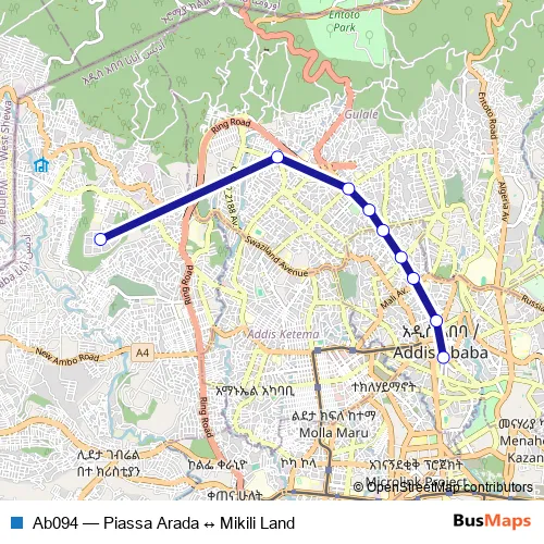 Bus Ab094 - Piassa Arada ↔ Mikili Land in Addis Ababa: Stops & Timetable