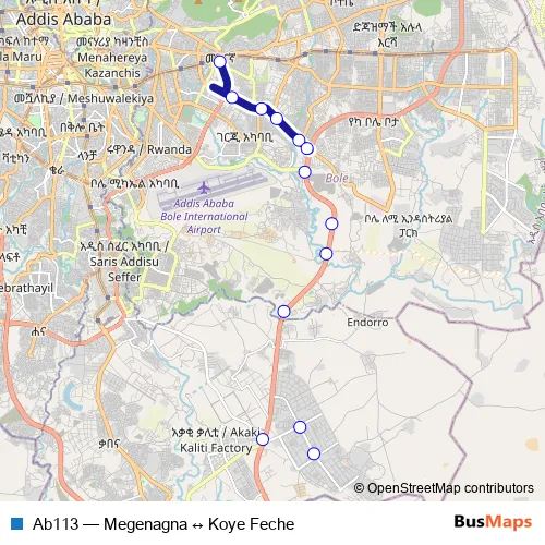 Bus Ab113 - Megenagna ↔ Koye Feche in Addis Ababa: Stops & Timetable