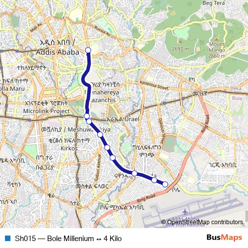 Bus Sh015 - Bole Millenium ↔ 4 Kilo in Addis Ababa: Stops & Timetable