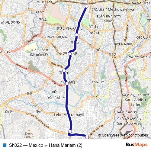 Bus Sh022 - Mexico ↔ Hana Mariam (2) in Addis Ababa: Stops & Timetable