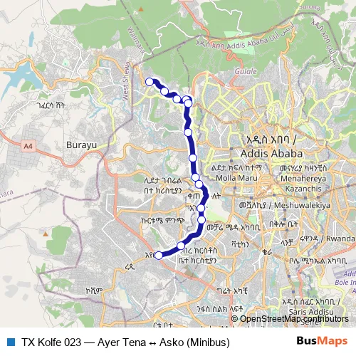 Bus TX Kolfe 023 - Ayer Tena ↔ Asko (Minibus): Full Schedule in Addis Ababa