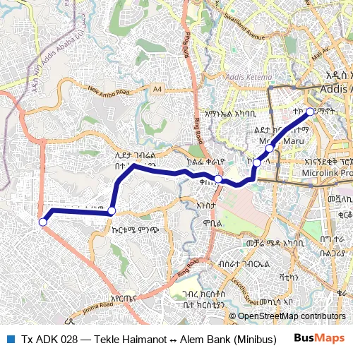 Bus Tx ADK 028 - Tekle Haimanot ↔ Alem Bank (Minibus) Schedule in Addis Ababa