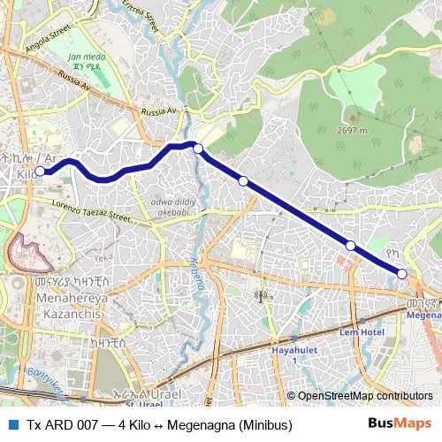 Click here to view the nearest Tx ARD 007 - 4 Kilo ↔ Megenagna (Minibus) bus stop.