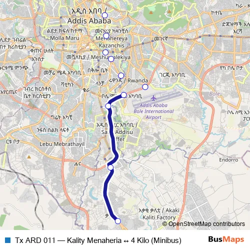 Click here to view the nearest Tx ARD 011 - Kality Menaheria ↔ 4 Kilo (Minibus) bus stop.