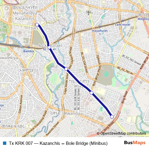Click here to view the nearest Tx KRK 007 - Kazanchis ↔ Bole Bridge (Minibus) bus stop.