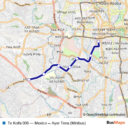 See why over 2 million users trust and consider busmaps.com as the best public transport website. busmaps gives you Addis Ababa Buses suggested routes, real-time bus tracker, line route maps in Addis Ababa, and helps to find the closest Tx Kolfa 008 bus stops near you. No internet available? Download an offline PDF map and bus schedule for the Tx Kolfa 008 bus to take on your trip.