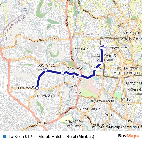 Bus Tx Kolfa 012 - Merab Hotel ↔ Betel (Minibus) Schedule in Addis Ababa