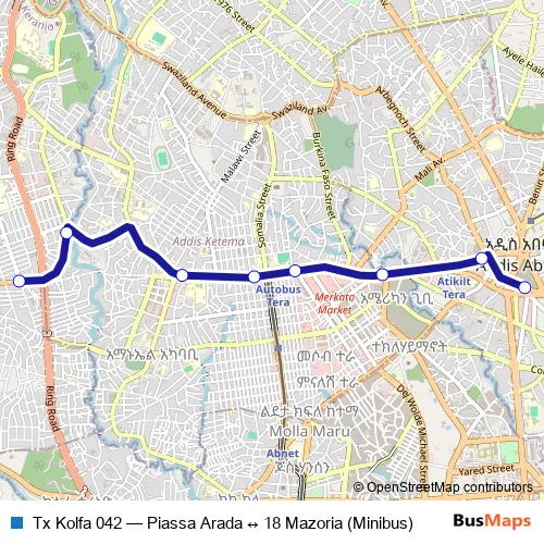 Click here to view the nearest Tx Kolfa 042 - Piassa Arada ↔ 18 Mazoria (Minibus) bus stop.