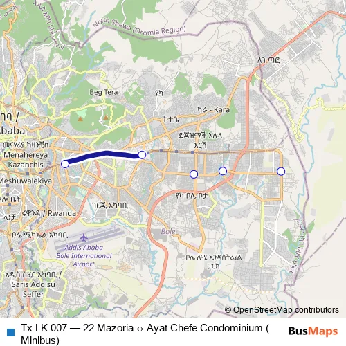 Click here to view the nearest Tx LK 007 - 22 Mazoria ↔ Ayat Chefe Condominium (Minibus) bus stop.