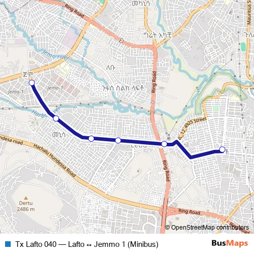The first stop of the Tx Lafto 040 bus route is Lafto and the last stop is Jemmo 1. Tx Lafto 040 (Lafto ↔ Jemmo 1 (Minibus)) is operational during በየቀኑ.