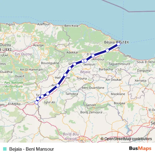 Additional information: بجاية - بني منصور has 13 stops and the total trip duration for this route is approximately 109 minutes.