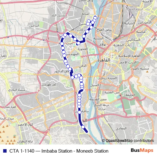 Bus CTA 1-1140 - Imbaba Station - Moneeb Station in Giza: Stops & Timetable