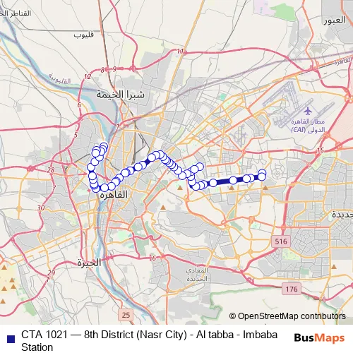 Click here to view the nearest CTA 1021 - 8th District (Nasr City) - Al tabba - Imbaba Station bus stop.