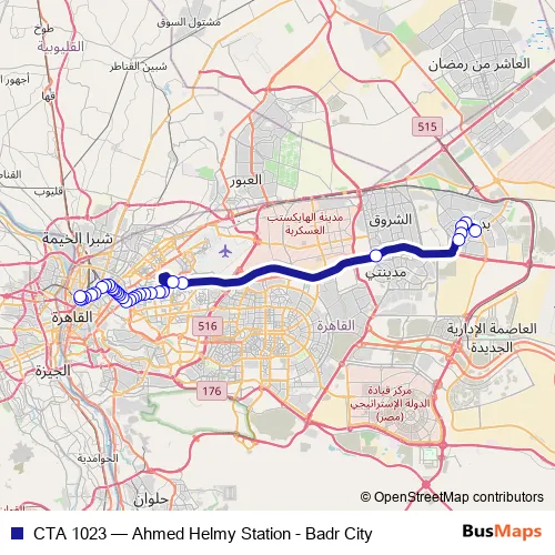 Click here to view the nearest CTA 1023 - Ahmed Helmy Station - Badr City bus stop.