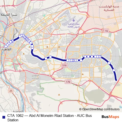 Click here to view the nearest CTA 1062 - Abd Al Moneim Riad Station - AUC Bus Station bus stop.