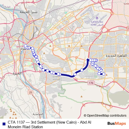 Click here to view the nearest CTA 1137 - 3rd Settlement (New Cairo) - Abd Al Moneim Riad Station bus stop.