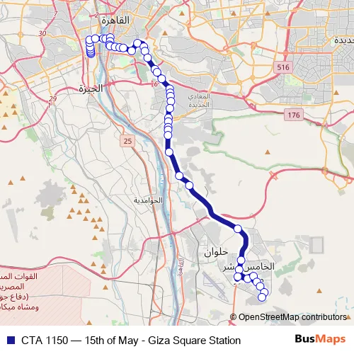 Click here to view the nearest CTA 1150 - 15th of May - Giza Square Station bus stop.