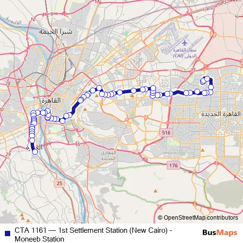 Click here to view the nearest CTA 1161 - 1st Settlement Station (New Cairo) - Moneeb Station bus stop.