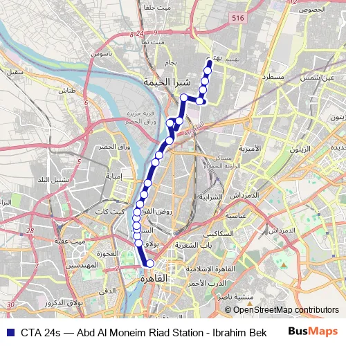 Click here to view the nearest CTA 24s - Abd Al Moneim Riad Station - Ibrahim Bek bus stop.