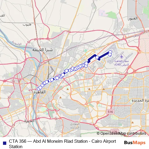 Click here to view the nearest CTA 356 - Abd Al Moneim Riad Station - Cairo Airport Station bus stop.