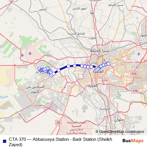 Click here to view the nearest CTA 370 - Abbasseya Station - Badr Station (Sheikh Zayed) bus stop.