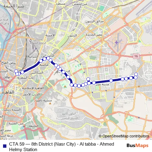 Click here to view the nearest CTA 59 - 8th District (Nasr City) - Al tabba - Ahmed Helmy Station bus stop.