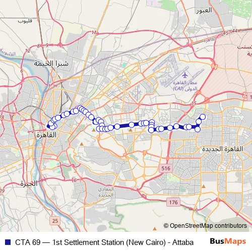 Click here to view the nearest CTA 69 - 1st Settlement Station (New Cairo) - Attaba bus stop.