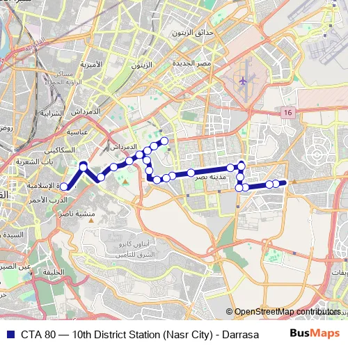 Click here to view the nearest CTA 80 - 10th District Station (Nasr City) - Darrasa bus stop.