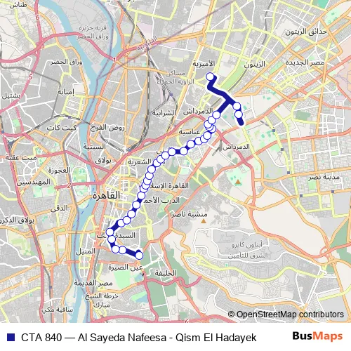 Click here to view the nearest CTA 840 - Al Sayeda Nafeesa - Qism El Hadayek bus stop.