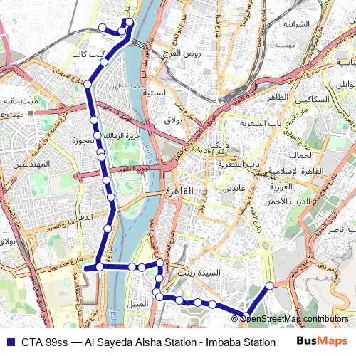 Bus CTA 99ss - Al Sayeda Aisha Station - Imbaba Station in Cairo: Stops & Timetable