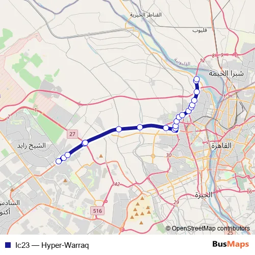 Bus Ic23 - Hyper-Warraq in Cairo: Stops & Timetable