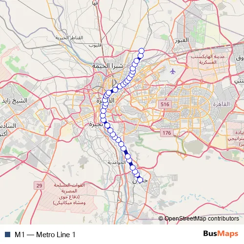 See why over 2 million users trust and consider busmaps.com as the best public transport website. busmaps gives you Cairo Metro Lines suggested routes, real-time bus tracker, line route maps in Cairo, and helps to find the closest M1 metro stops near you. No internet available? Download an offline PDF map and bus schedule for the M1 metro to take on your trip.