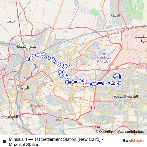 See why over 2 million users trust and consider busmaps.com as the best public transport website. busmaps gives you Cairo Buses suggested routes, real-time bus tracker, line route maps in Cairo, and helps to find the closest Minibus 1 bus stops near you. No internet available? Download an offline PDF map and bus schedule for the Minibus 1 bus to take on your trip.