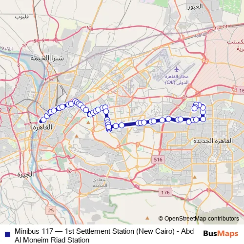 Click here to view the nearest Minibus 117 - 1st Settlement Station (New Cairo) - Abd Al Moneim Riad Station bus stop.