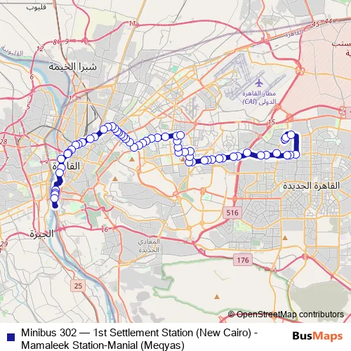 Bus Minibus 302 - 1st Settlement Station (New Cairo) - Mamaleek Station-Manial (Meqyas) Schedule in Cairo