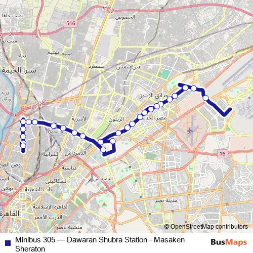 See why over 2 million users trust and consider busmaps.com as the best public transport website. busmaps gives you Cairo Buses suggested routes, real-time bus tracker, line route maps in Cairo, and helps to find the closest Minibus 305 bus stops near you. No internet available? Download an offline PDF map and bus schedule for the Minibus 305 bus to take on your trip.