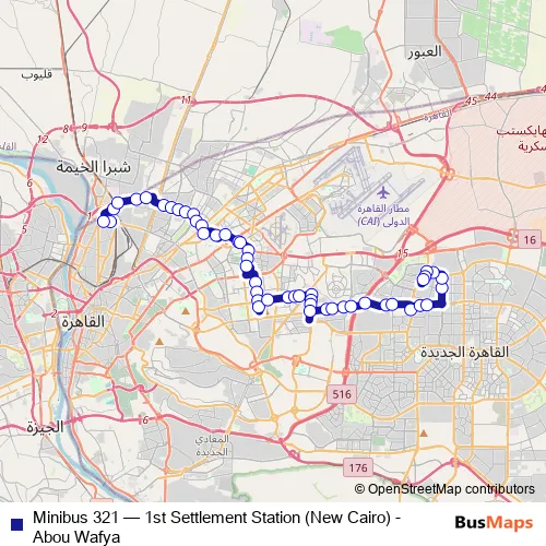 See why over 2 million users trust and consider busmaps.com as the best public transport website. busmaps gives you Cairo Buses suggested routes, real-time bus tracker, line route maps in Cairo, and helps to find the closest Minibus 321 bus stops near you. No internet available? Download an offline PDF map and bus schedule for the Minibus 321 bus to take on your trip.
