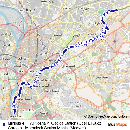 Bus Minibus 4 - Al Nozha Al Gadida Station (Gesr El Suez Garage) - Mamaleek Station-Manial (Meqyas) Schedule in Cairo