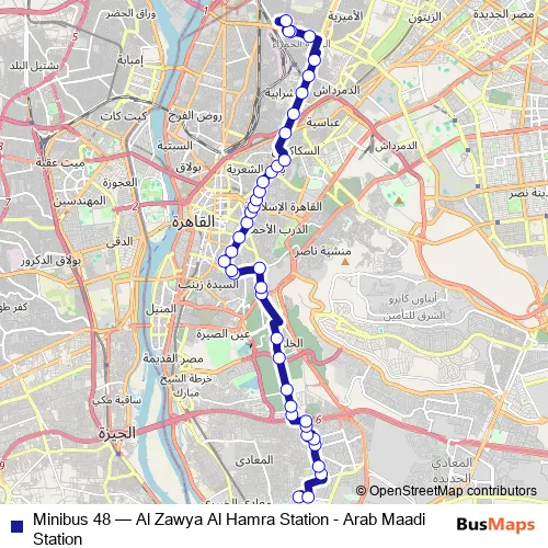Bus Minibus 48 - Al Zawya Al Hamra Station - Arab Maadi Station in Cairo: Stops & Timetable