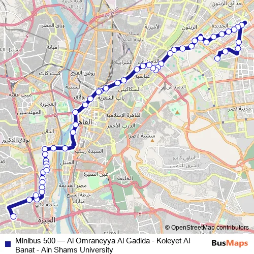 Bus Minibus 500 - Al Omraneyya Al Gadida - Koleyet Al Banat - Ain Shams University Schedule in Cairo