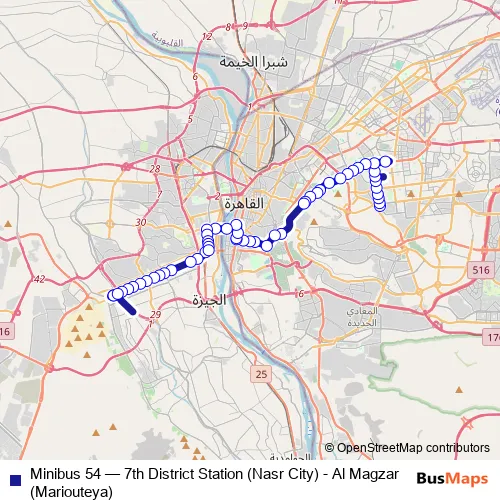 Click here to view the nearest Minibus 54 - 7th District Station (Nasr City) - Al Magzar (Mariouteya) bus stop.