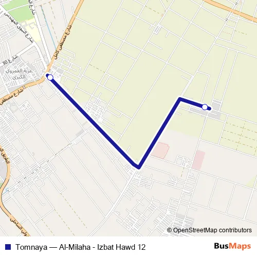 The first stop of the Tomnaya bus route is Al-Milaha and the last stop is Izbet Hawd 12. Tomnaya (Al-Milaha - Izbat Hawd 12) is operational during يومياً.