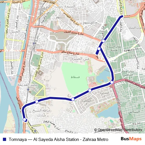 The first stop of the Tomnaya bus route is Magra Al Oyoun (Salah Salem) and the last stop is River Transport Authority (Zahraa). Tomnaya (Al Sayeda Aisha Station - Zahraa Metro) is operational during يومياً.