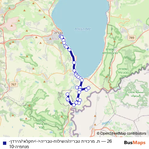 The first stop of the 26 bus route is م.مركزية طبريا/هشيلواح and the last stop is حكلاي/هيَردين. 26 (ת. מרכזית טבריה/השילוח-טבריה<->חקלאי/הירדן-מנחמיה-10) is operational during يومياً.