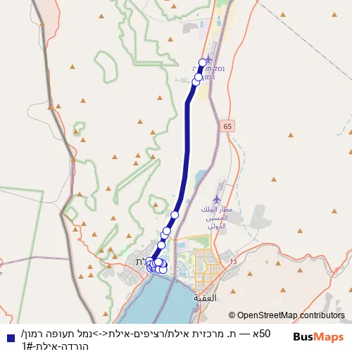 Bus 50א - ת. מרכזית אילת/רציפים-אילת<->נמל תעופה רמון/הורדה-אילת-1#: Full Schedule in Aqaba