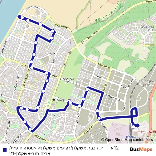 Bus 12א - ת. רכבת אשקלון/רציפים-אשקלון<->מסוף חופית/אריה תגר-אשקלון-21: Full Schedule in Gaza